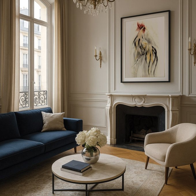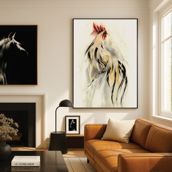 W Galerii w Chmurach znajdziesz prace z motywem koguta – symbolu w wielu kulturach życia, energii i porannego początku dnia, który dobrze współgra z kuchenną i jadalnianą sceną: